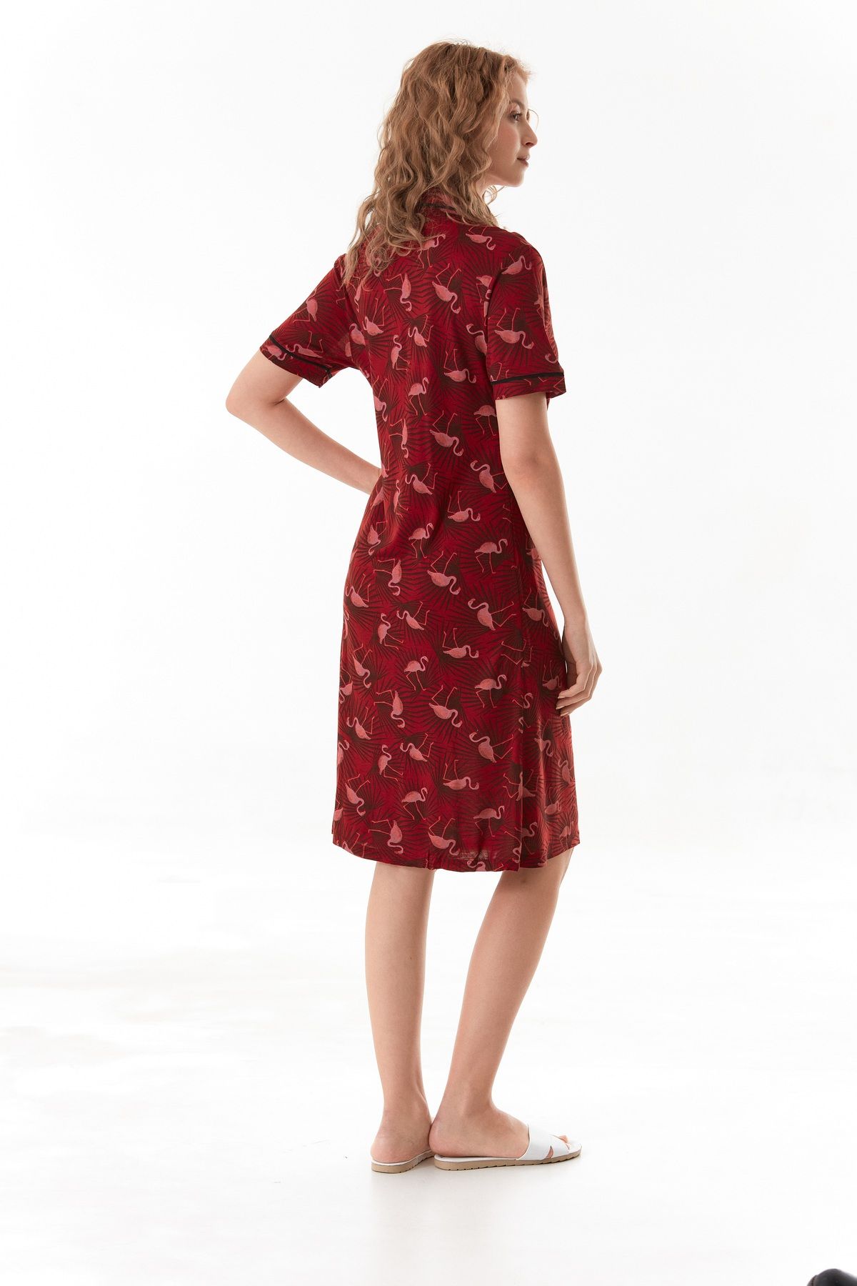 Kadın Bordo Flamingo Desenli Boydan Düğmeli Viskon Kumaş Gecelik Elbise ( Uyku bandı Hediyeli )Kadın Bordo Flamingo Desenli Boydan Düğmeli Viskon Kumaş Gecelik Elbise ( Uyku bandı Hediyeli )6165.BORFİL.2XL-ORJ