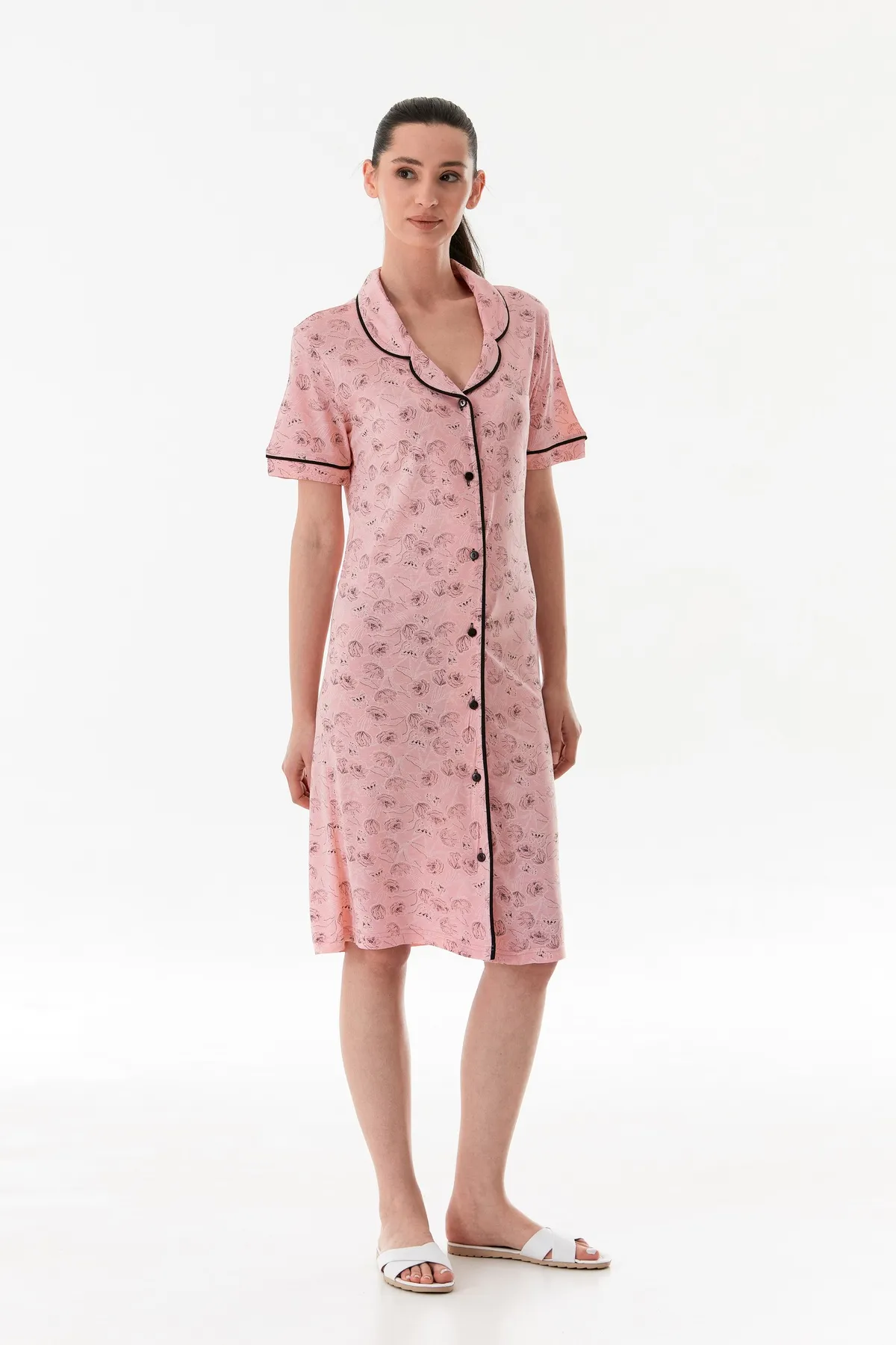 Kadın Boydan Düğmeli Viskon Kumaş Gecelik Elbise ( Uyku bandı Hediyeli ) PUDRA-2XL