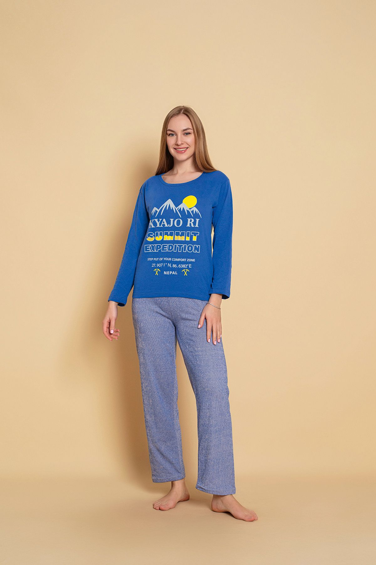 Kadın Penye Sıfır Yaka Uzun Kol Pijama Takımı