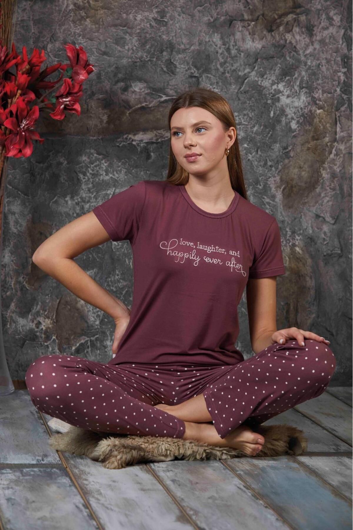 Kadın Sıfır Yaka Yazlık Kısa Kol Pijama Takımı YENİ SEZON