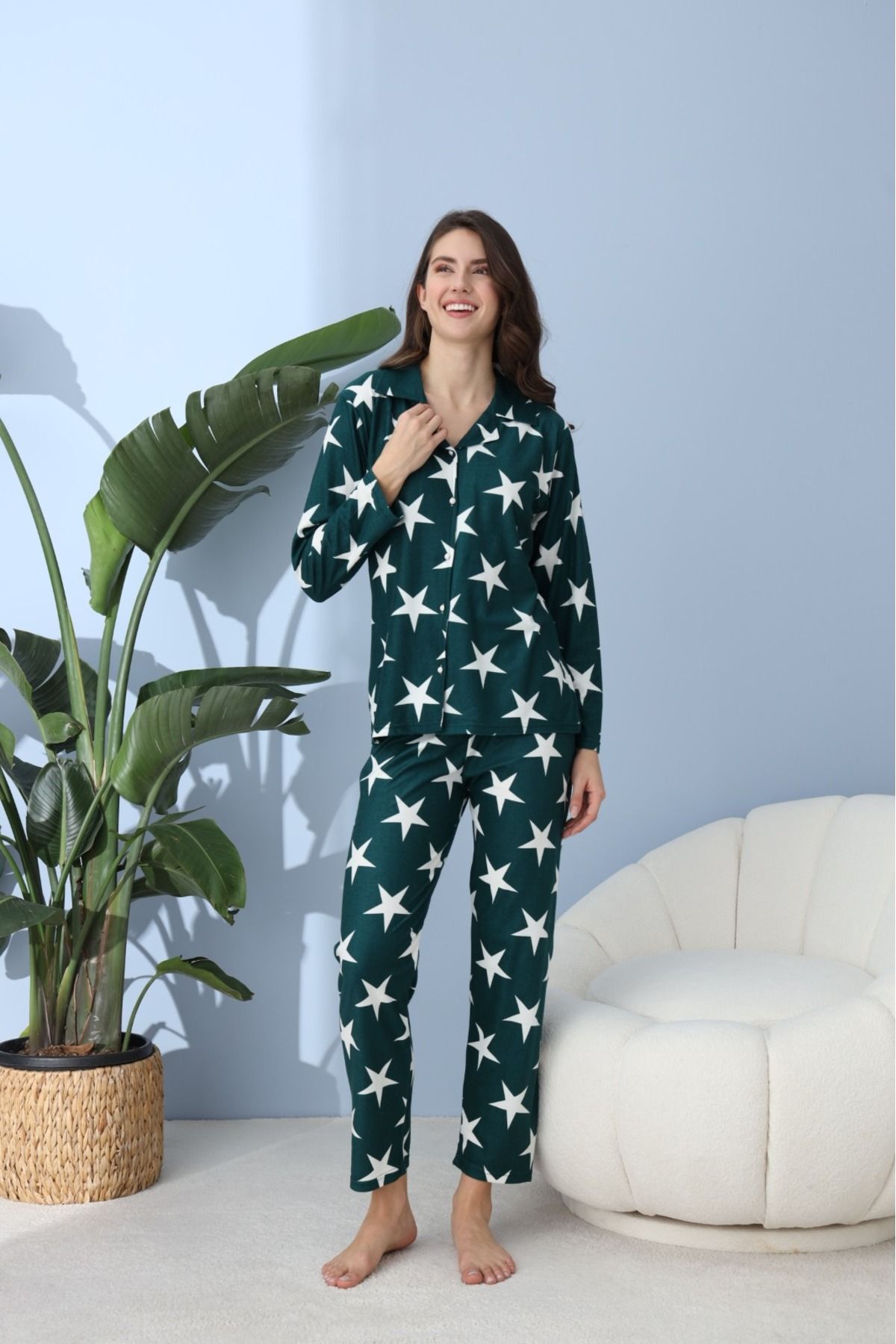 Önden Düğmeli Gömlek Model Kadın Pijama Takımı Süet Kumaş